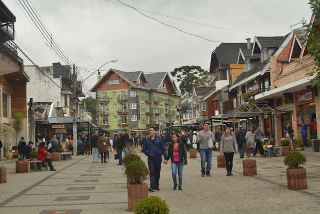 Após conhecer o Museu e o Auditório, tentamos conhecer a famosa cervejaria Baden Baden, porém está super lotada e só deu para registrar por fora. Não bebo cerveja, porém para quem gosta dizem que é muito boa. E claro, não podia faltar conhecer o centro de Campos do Jordão, mas como estava oscilando o tempo (chovia e parava) não consegui tirar muitas fotos.